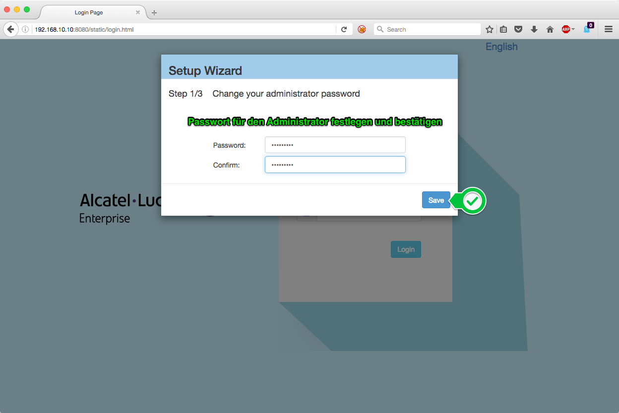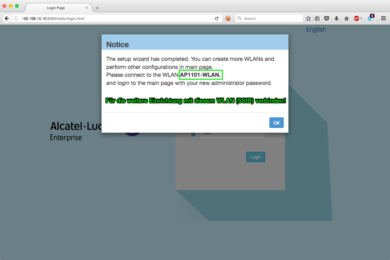 Bevor wir den AP1101 einrichten können, müssen wir uns anmelden. Das werksseitig hinterlegte Passwort ist admin und muss im Rahmen der Einrichtung auf ein eigenes geändert werden.