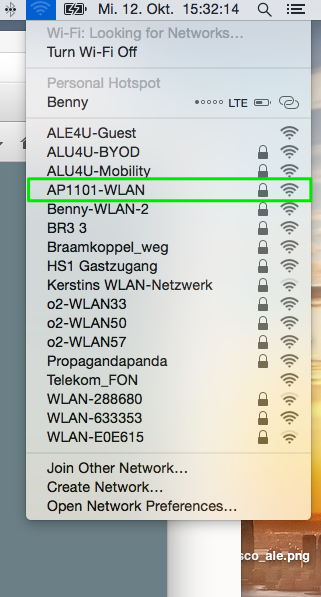 Wir wählen nun unser neues WLAN (AP1101-WLAN) aus der Liste aus