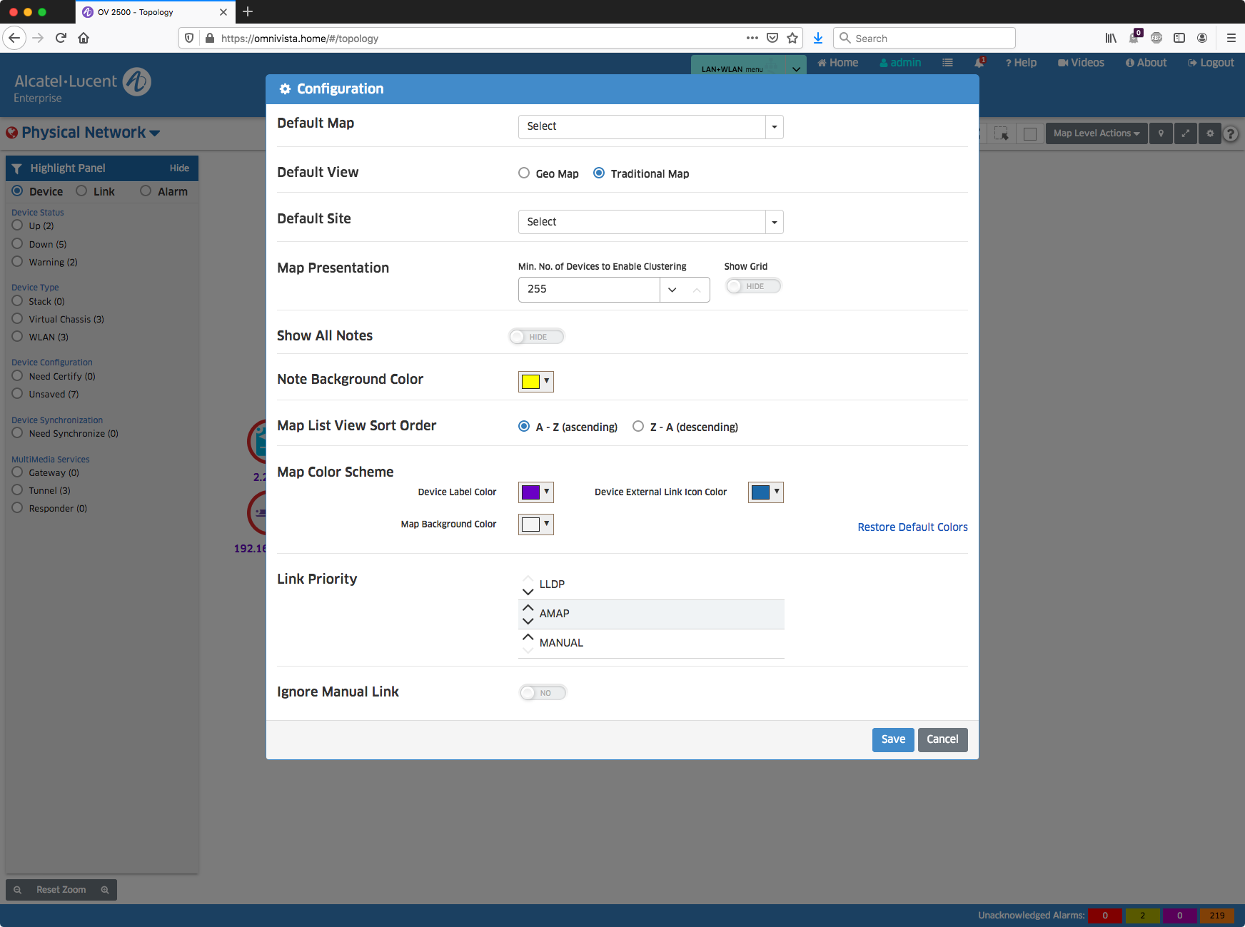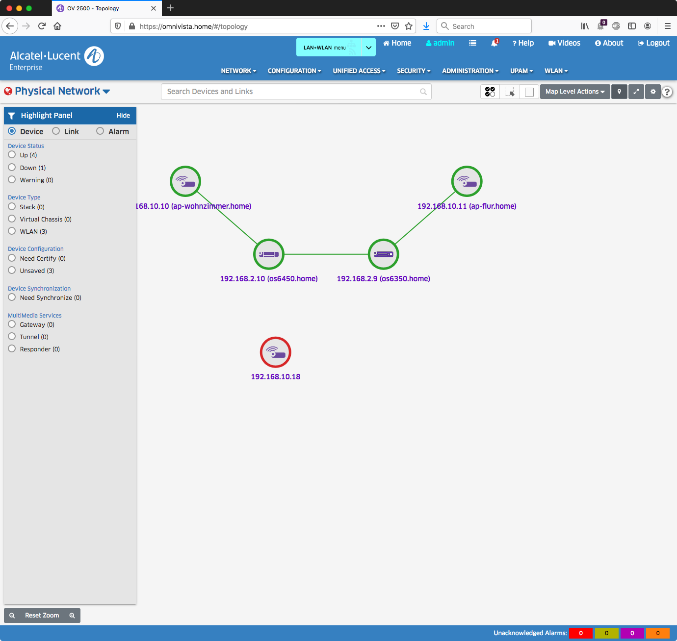 Mit dem Klick auf Topologie, landet man standardmäßig auf folgender Ansicht: