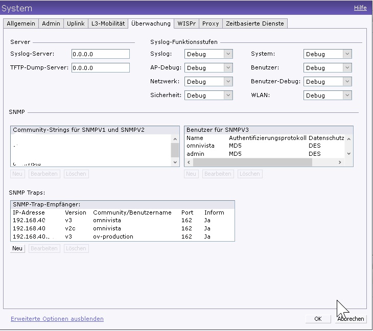 Wir empfehlen folgende Konfigurationen auf dem Switch durchzuführen und anschließend die Discovery Funktion von OmniVista 2500 zu nutzen.