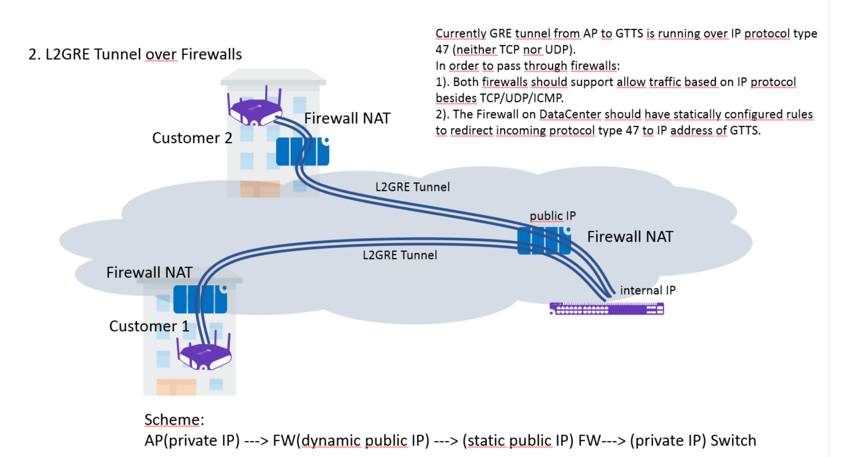 Ziel: L2GRE über WAN-Verbindungen hinweg nach folgender Skizze: