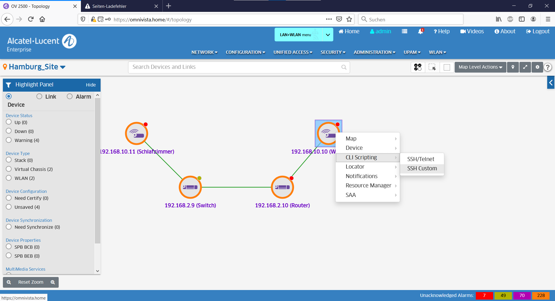 Seit OmniVista 4.5R2 gibt es die neue „SSH Custom“-Funktion mit der im Browser die bevorzugte externe SSH-Applikation für die Verwaltung via SSH geöffnet wird.