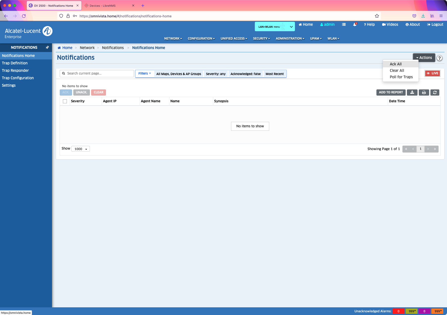 Bereits in OV 4.5R3 wurde die Funktion „Ack All“ im Bereich der Traps/Notifications eingeführt. Dies ist besonders dann hilfreich, wenn sich eine Vielzahl an Traps angestaut haben und einfach nur aufgeräumt werden soll.