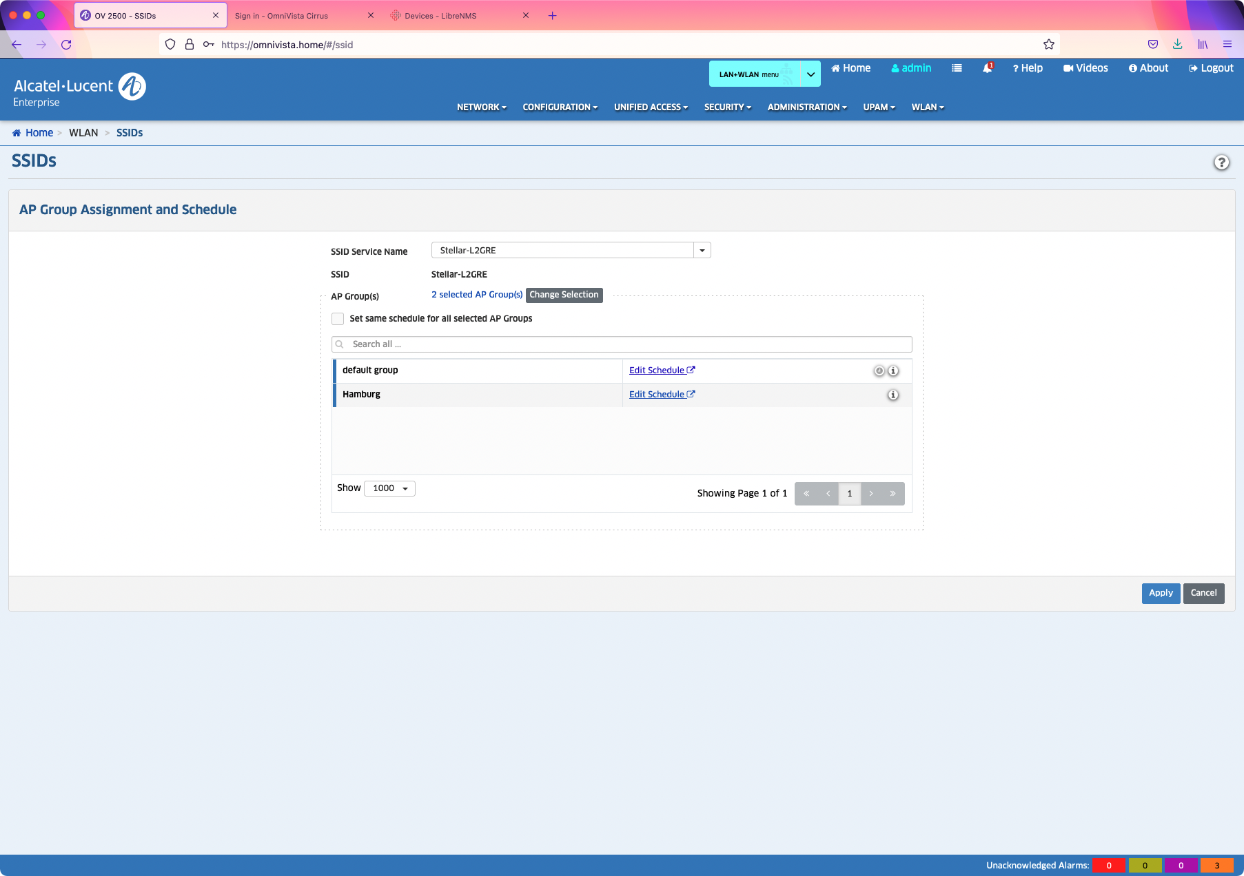 Bei vielen AP-Gruppen (z.B. wenn diese standortbasiert sind) kann es in der SSID-Übersicht schwierig sein zu erkennen welche von der Standardeinstellung abweichen. Dies wird nun mit einem kleinen Uhrsymbol signalisiert und macht die Verwaltung der SSIDs mit vielen Standorten/AP-Gruppen komfortabler.