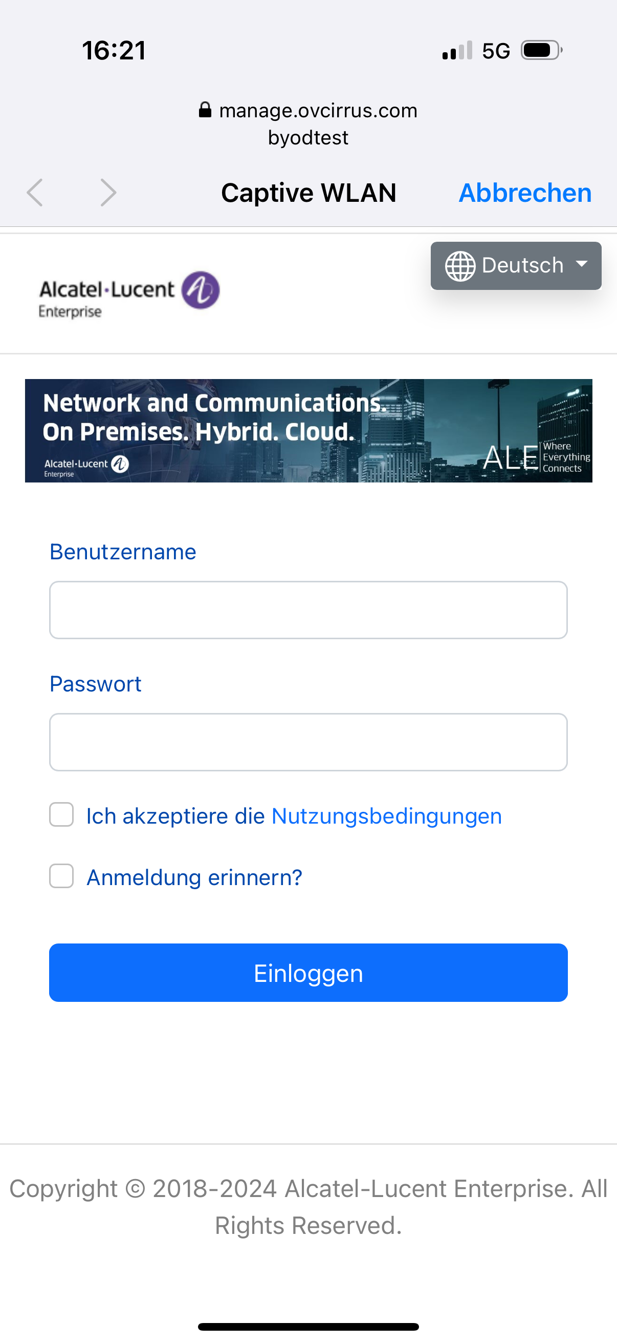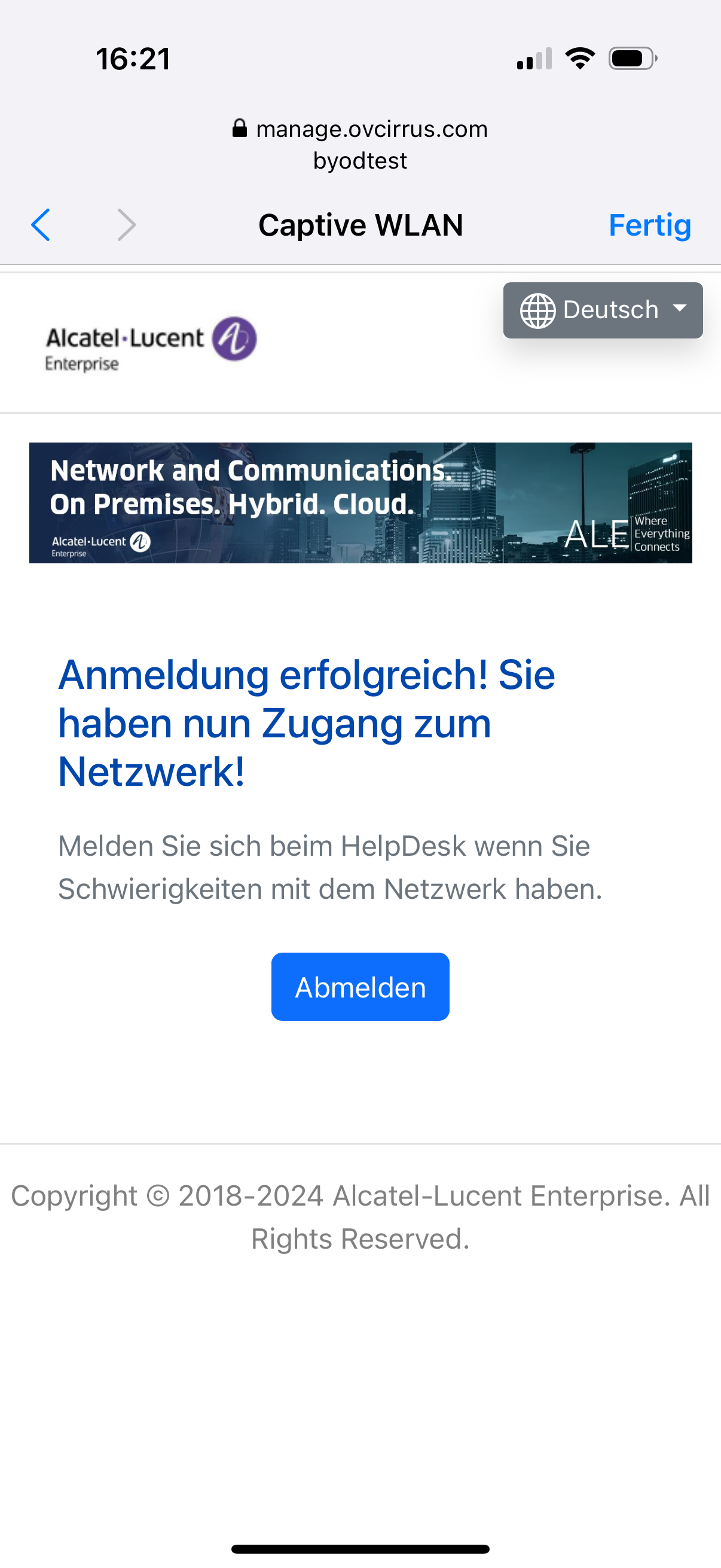 byodtestverbunden und PSK angegeben - Anmeldung mit Benutzerdaten aus dem LDAP über Captive-Portal Seite