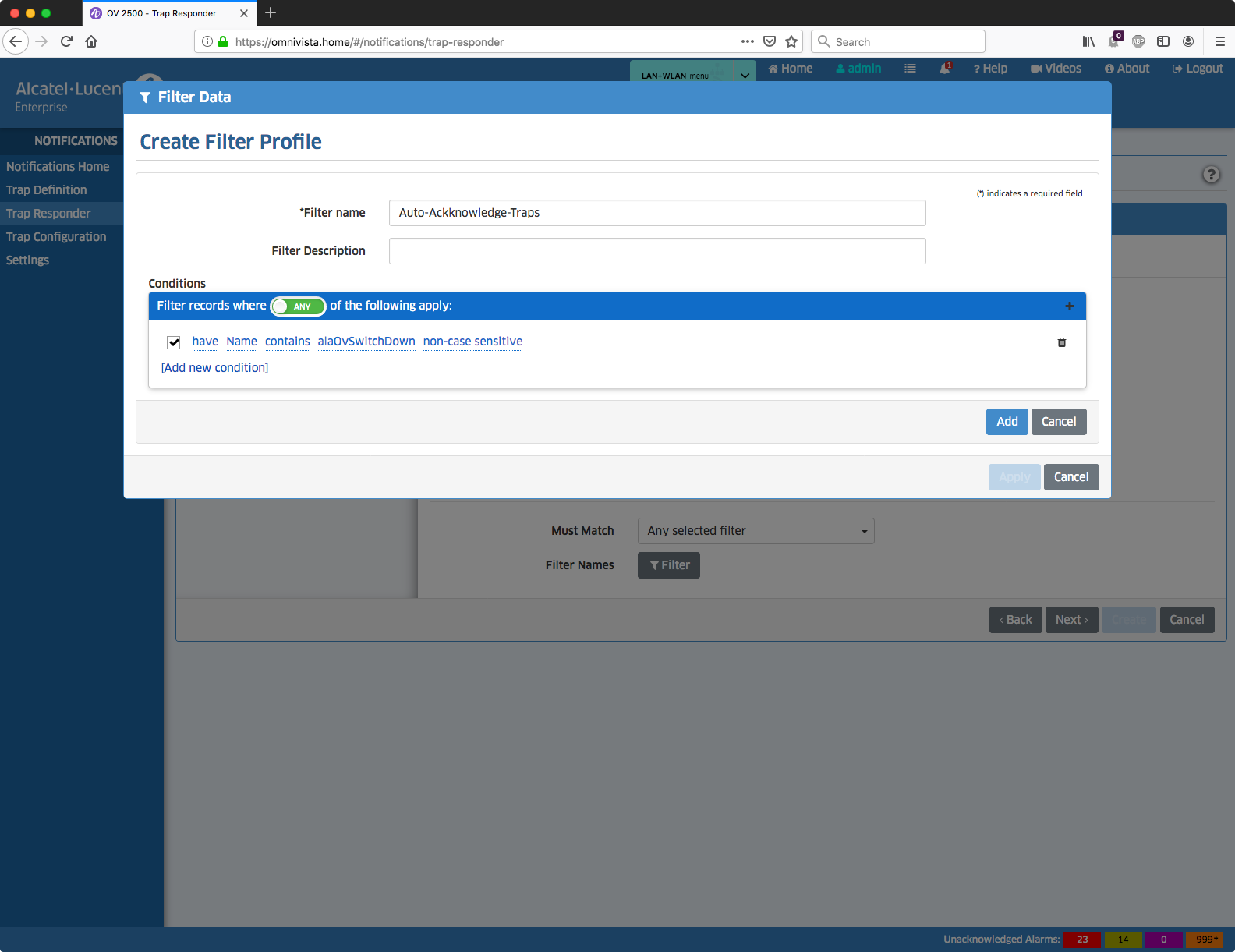 OmniVista Trap Responder für "Auto-Acknowledge"