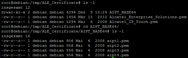 Mit dem folgenden Befehl werden nun meine eigenen Zertifikate mit den Alcatel-Zertifikaten verknüpft.