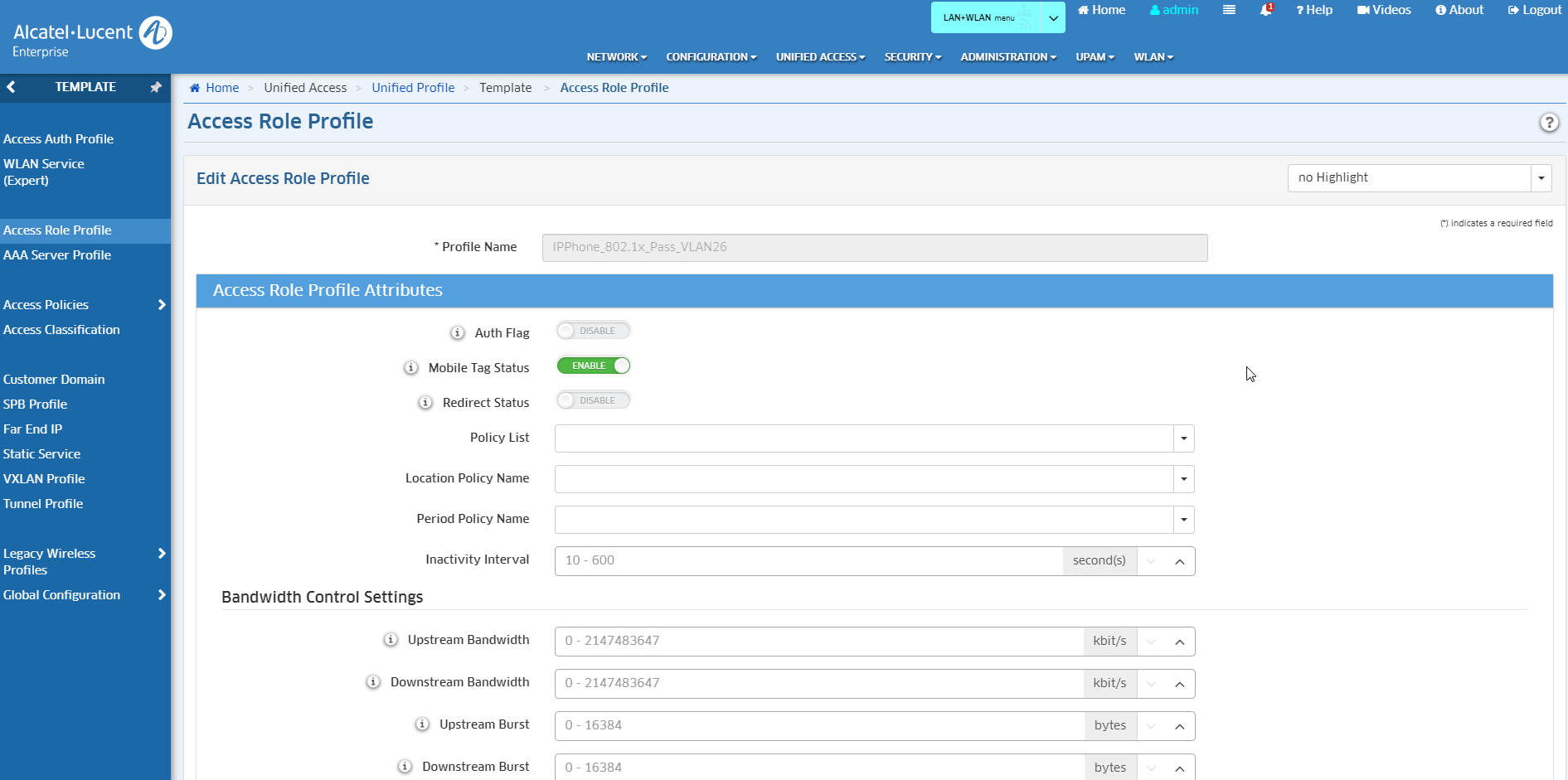 Access Role Profile (Unified Access > Unified Profile > Template)