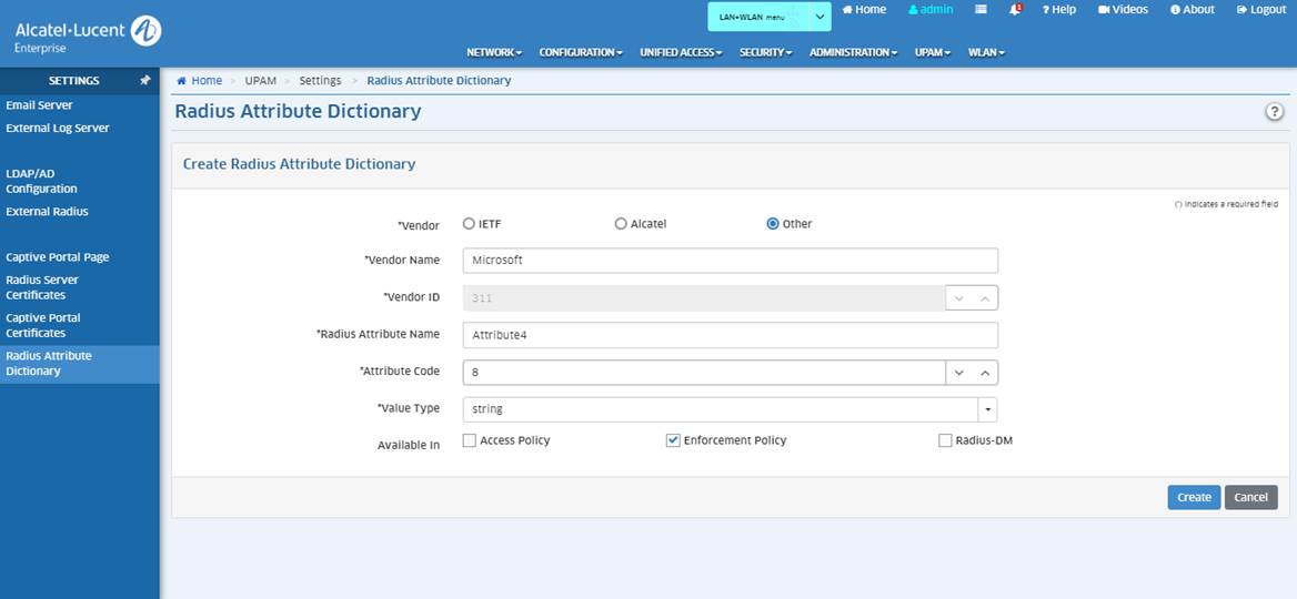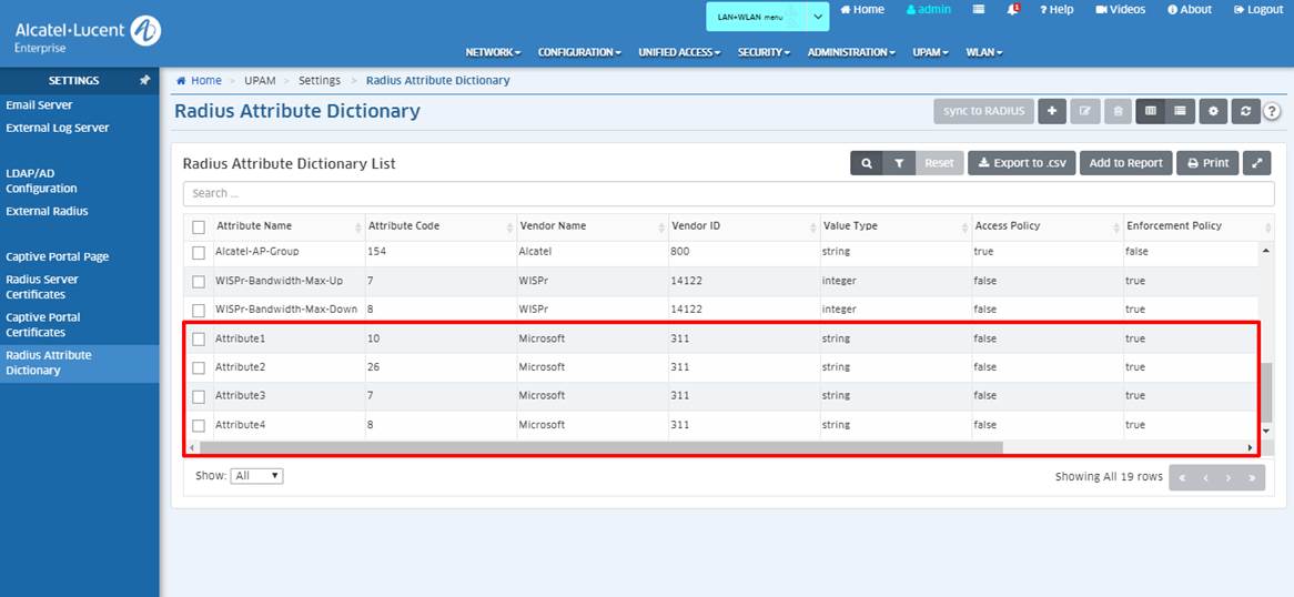 OmniVista 2500 v4.4R1 UPAM - Attribute für Microsoft NPS