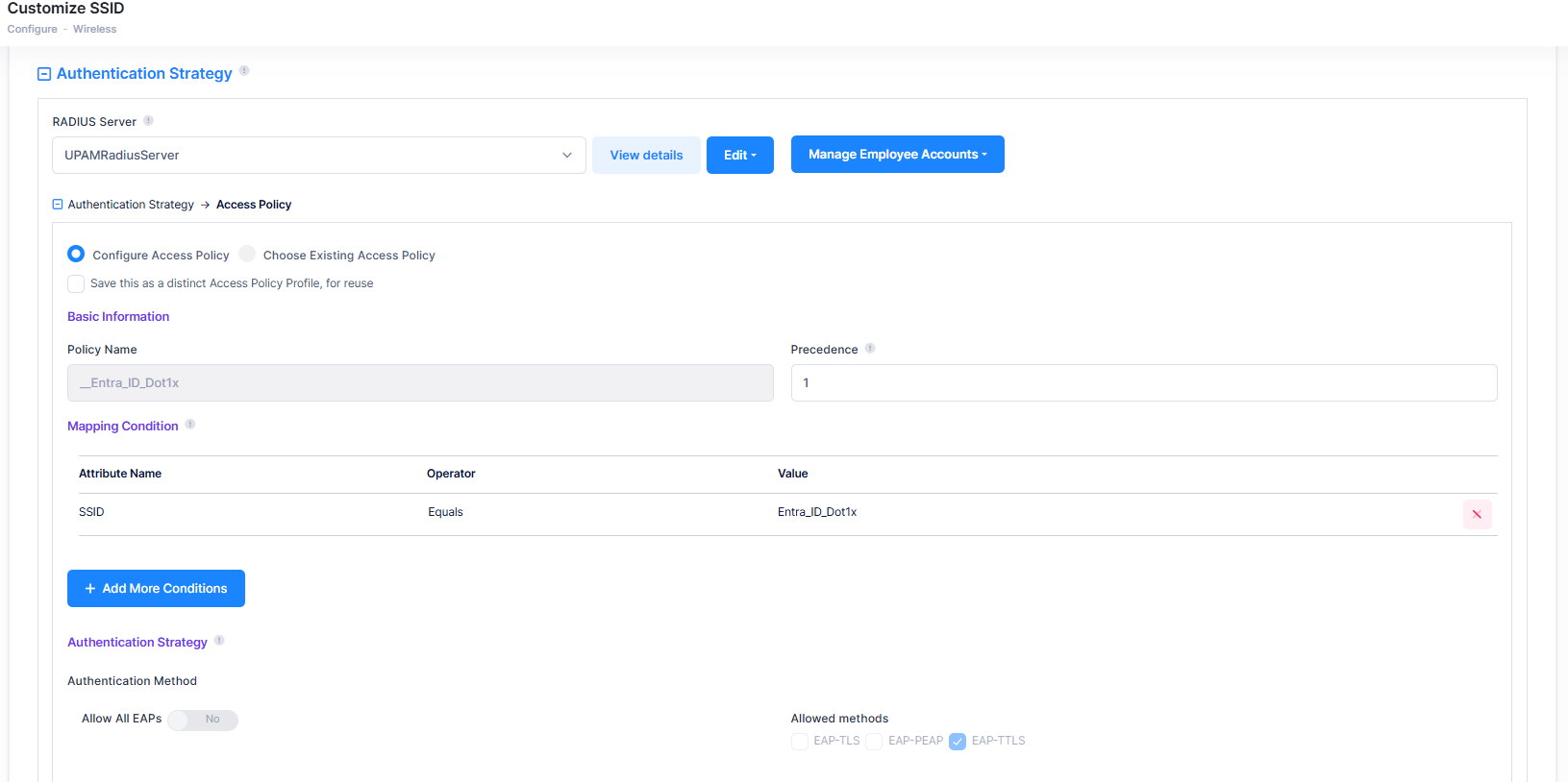 Auf dieser Seite erhalten Sie Informationen um Microsoft Entra als Radius Server in OmniVista Cirrus 10.x (OVCX) zu integrieren. In diesem Beispiel wird eine SSID ausgestrahlt als WPA3 Enterprise, indem sich die Clients per 802.1x authentifizieren.
