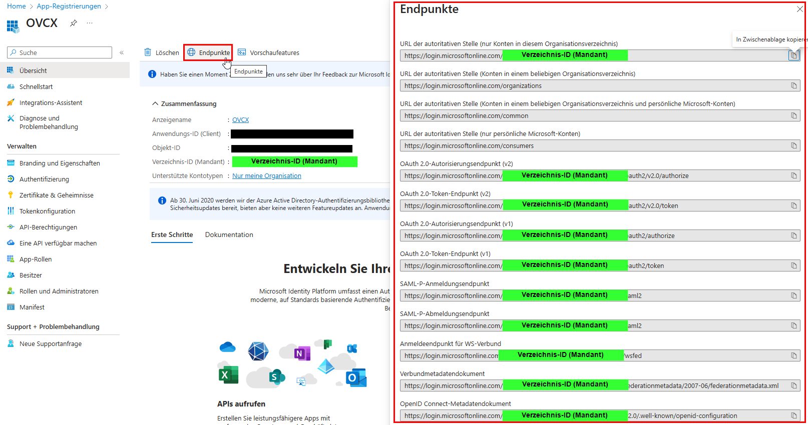 Dies ist wichtig, damit bei den Endpunkten die richtige Verzeichnis-ID (Mandant) hinterlegt ist.