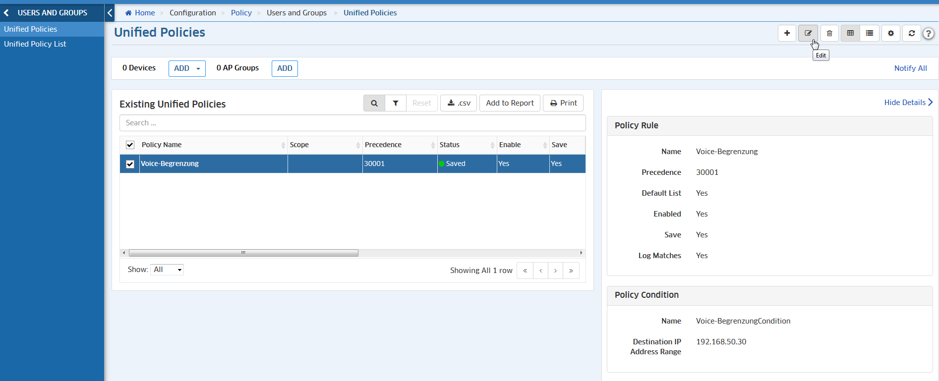 Diese Konfiguration ist zu finden im Menü 'Unified Access → Unified Policy':